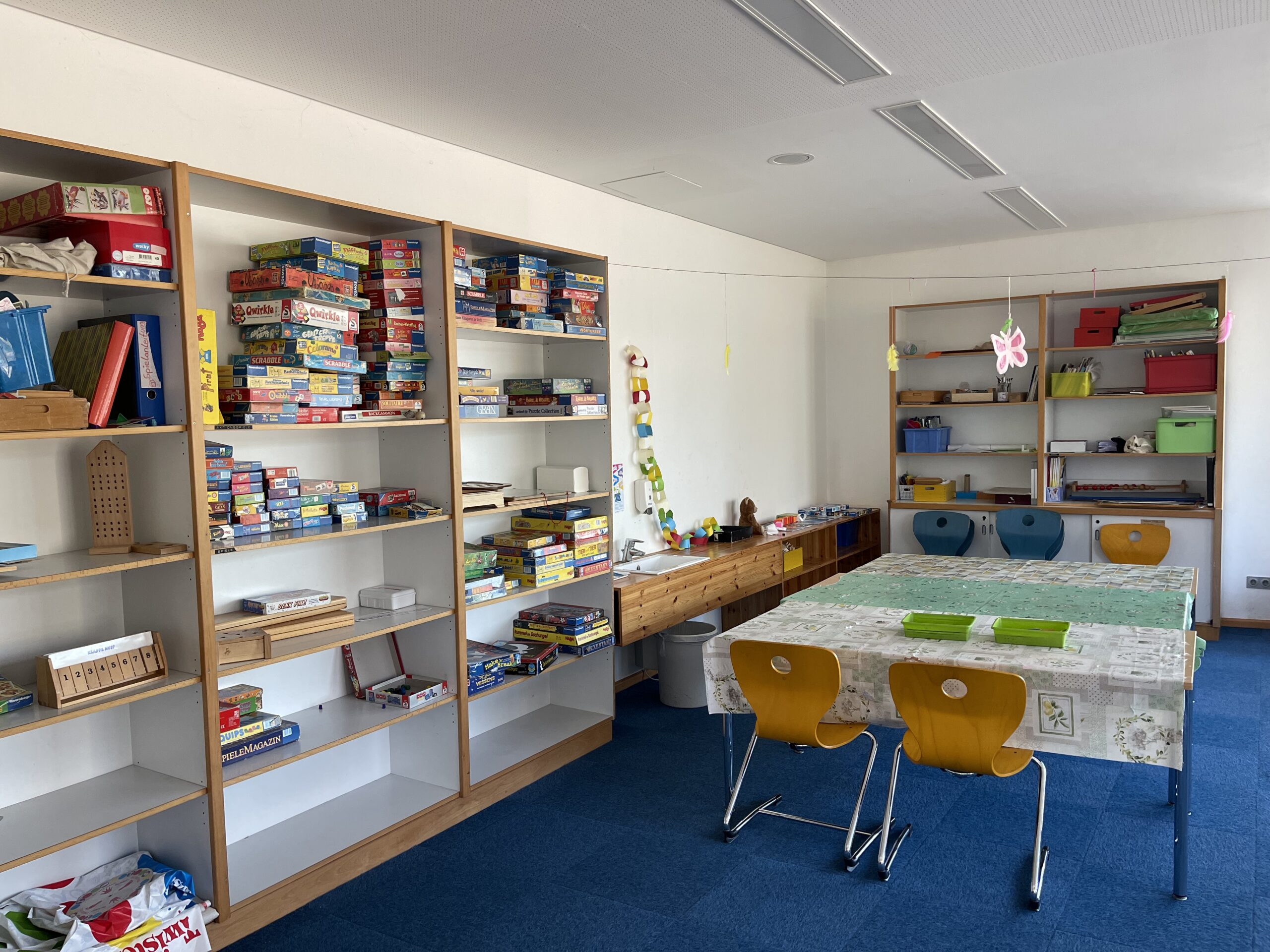 Unsere Betreuungsräume sind in einem Erweiterungsbau der Schule untergebracht. Dieser Bau schließt sich an den Schulbereich an, in dem sich die Klassen der Eingangsstufen befinden. So entsteht gerade für unsere „Kleinen“ ein hohes Maß an räumlicher Orientierung. Auch die Mensa befindet sich in unmittelbarer Nähe der OGS und den Klassenräumen.