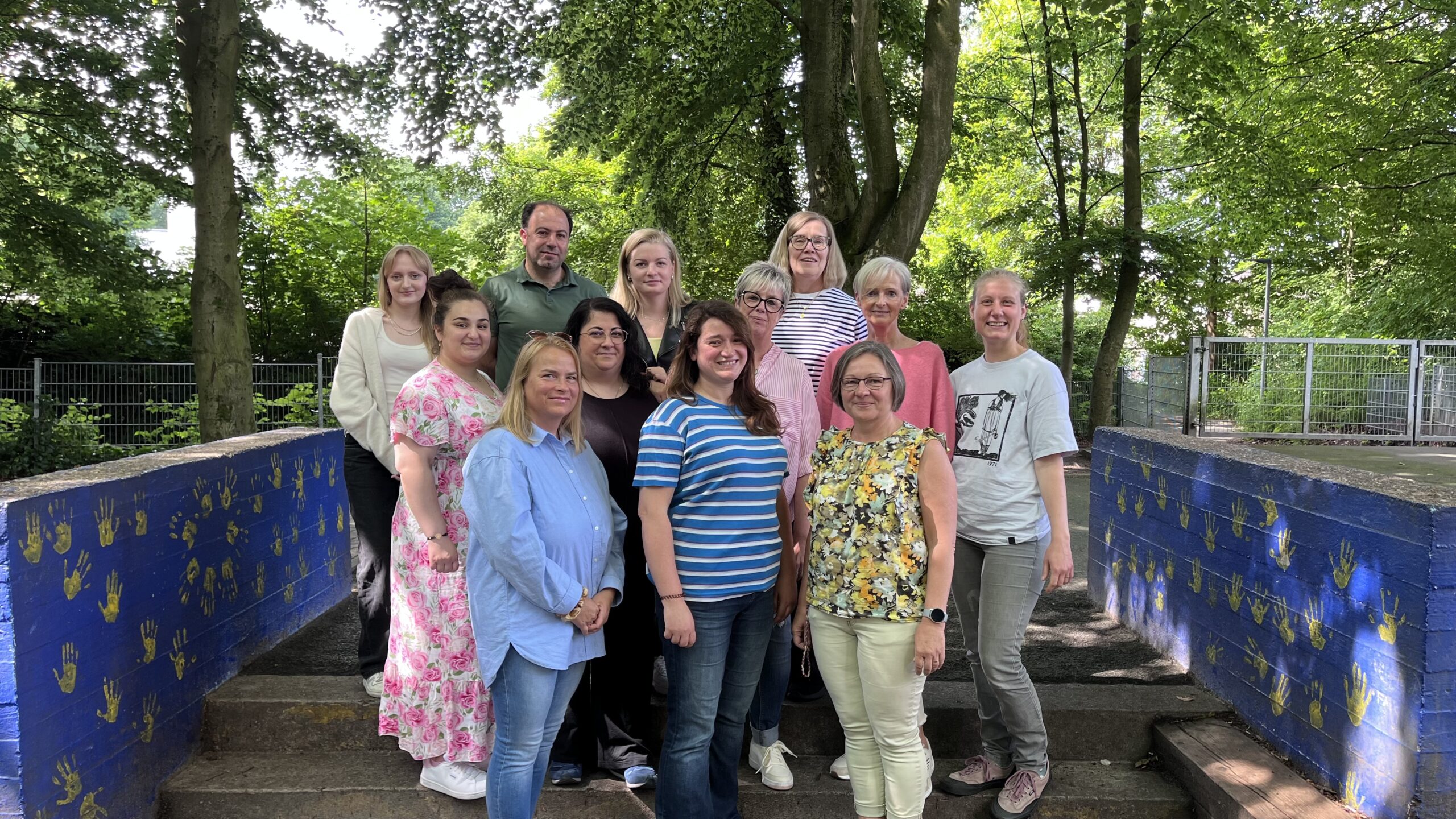 4 Klassen werden als gebundene Ganztagsklassen im Offenen Ganztag geführt. Hier arbeiten die Lehrer*innen und die Mitarbeiter*innen der OGS besonders eng zusammen. 4 Klassen sind offene Ganztagsgruppen. Insgesamt besuchen 180 Kinder unsere OGS. 20 Kinder werden in der VÜM betreut. Es arbeiten im Bereich des Ganztags zur Zeit 12 pädagogische Fachkräfte und Ergänzungskräfte plus drei Hauswirtschaftskräfte sowie eine Auszubildende und eine FSJler*in.